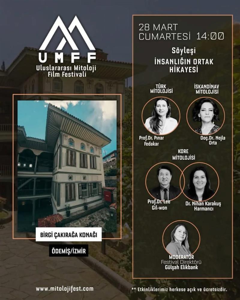 İzmir İl Kültür ve Turizm Müdürlüğü ile Ödemiş Belediyesi’nin katkılarıyla gerçekleştirilecek etkinlikte Türk, İskandinav ve Kore mitolojileri alanında uzman isimler tarafından ele alınacak. Söyleşinin moderatörlüğünü Festival Direktörü Gülşah Elikbank üstlenirken, Prof. Dr. Pınar Fedakar, Doç. Dr. Nejla Orta, Prof. Dr. Lee Gil-won ve Dr. Nihan Karakuş Harmancı konuşmacı olarak yer alacak.