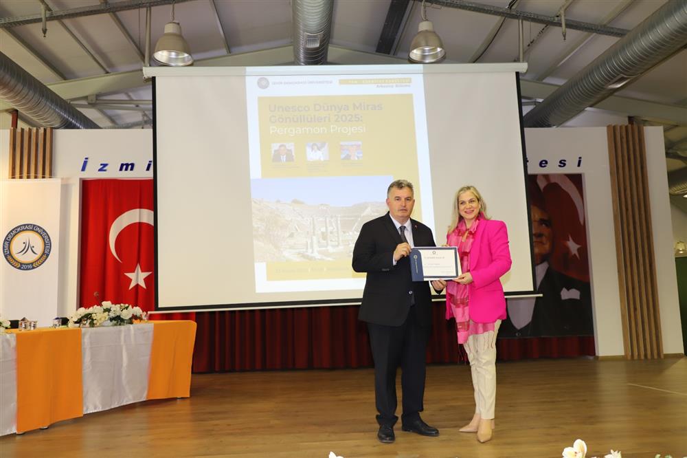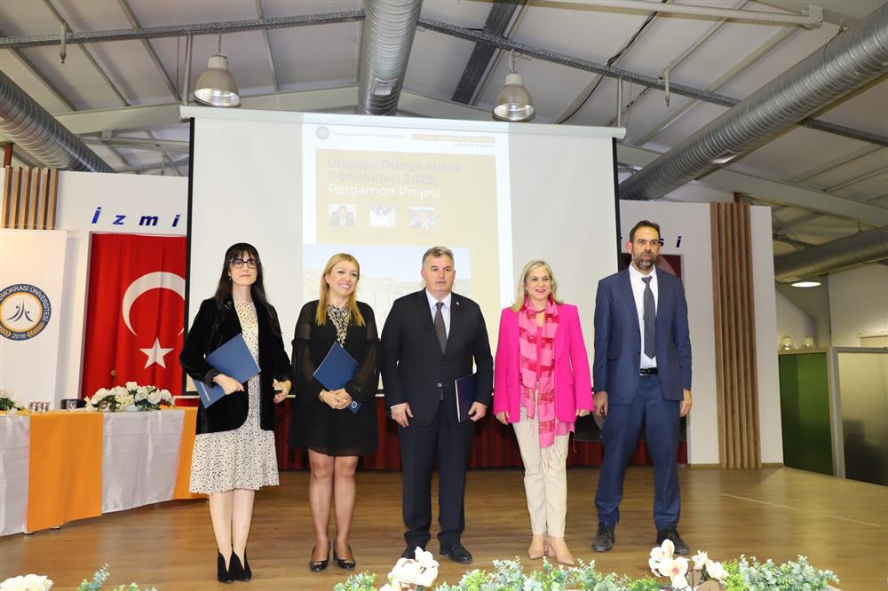 İl Müdürümüz Sn. Dr. Sadık DOĞRUER, İzmir Resim ve Heykel Müze Müdürü Sn. Ayşe Füruzan CAMAN ve Dokuz Eylül Üniversitesi Öğretim Görevlisi Sn. Meltem KOLDAY ile İzmir Demokrasi Üniversitesi'nde gerçekleştirilen "UNESCO Dünya Miras Gönüllüleri 2025: Pergamon Projesi" adlı etkinliğe katılım sağlamış, etkinlikte konuşma yapmıştır.