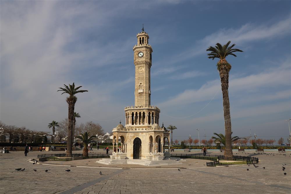 Konak Meydanı'nda yer alan ve İzmir’in sembolü olan Saat Kulesi Osmanlı Padişahı Sultan II. Abdülhamid’in tahta çıkışının 25. yıldönümü nedeniyle 1901 yılında; İzmir Valisi Kıbrıslı Kamil Paşa, Bahriye Mirlivası Said Paşa ve Belediye Reisi Eşref Paşa’dan oluşan komisyon tarafından yaptırılmıştır. Saat Kulesinin inşaatını mimar Raymond Charles Pere yapmıştır. Yaklaşık 1 yıl süren yoğun çalışmalardan sonra, 1 Eylül 1901 yılında İzmir'in simgesine dönüşen Çeşmeli Saat Kulesi'nin açılışı yapılmıştır.
